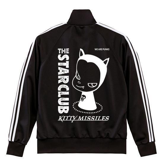 奈良美智画によるアルバムジャケット「KITTY MISSILE」から落とし込んだデザインをプリント、機能的なダブルスライダーにクラシカルなサイドラインが入ったトラックウエアとなっています。