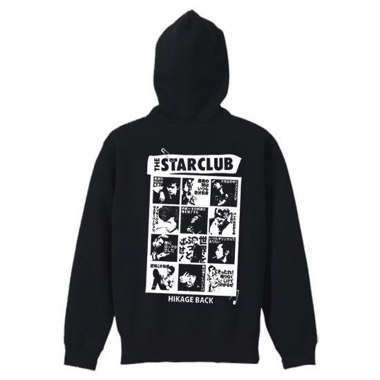フロントにバンドロゴ、フードに星ロゴ、バックはHIKAGE BACKをワードにしたデザインがプリントされています。